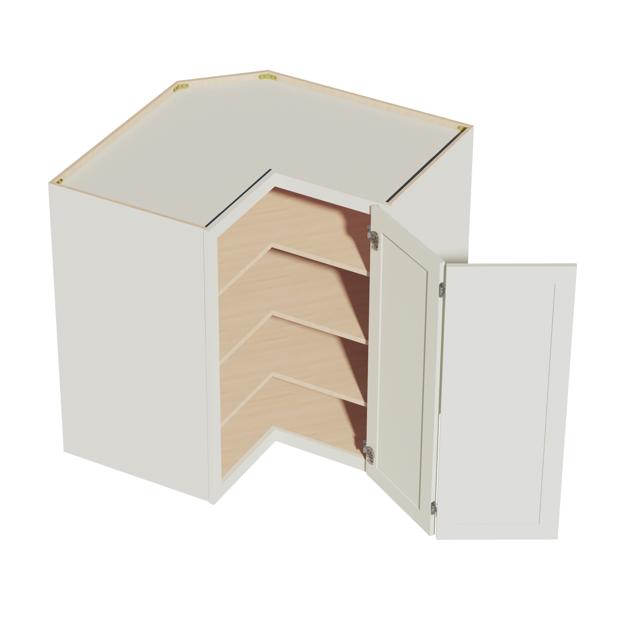 TW-WPC2442: Creamy White Shaker 24″W x 42″H 1 Door & 3 Shelves Pie Cut Wall Corner Cabinet