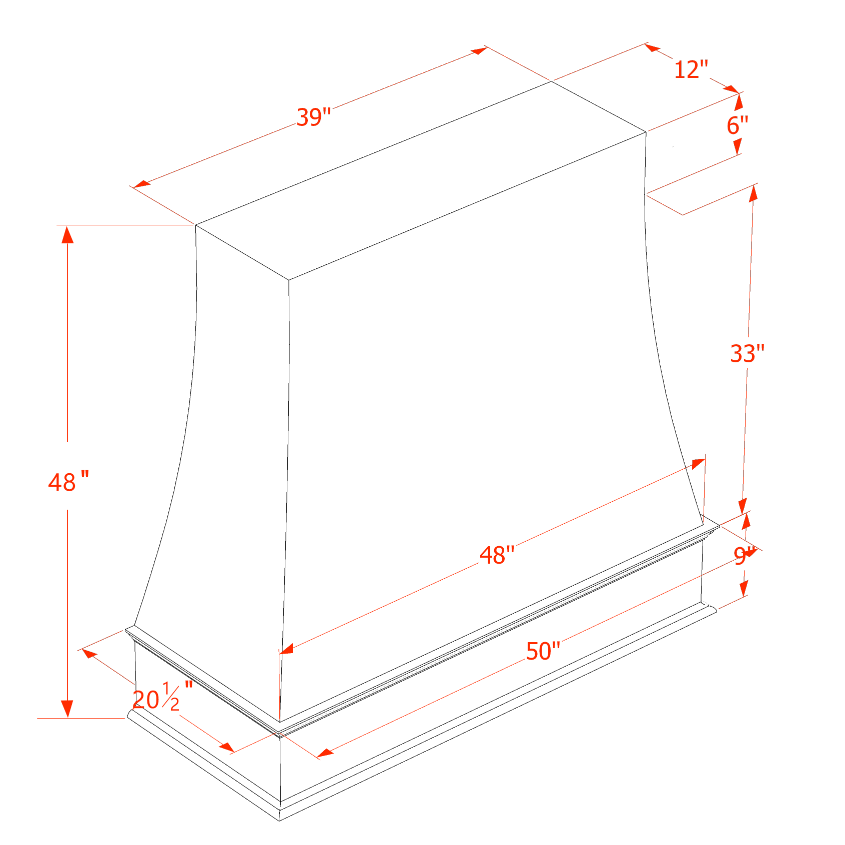 TW-WRH4848: Creamy White Shaker 48″W x 48″H Wood Wall Mounted Range Hoods